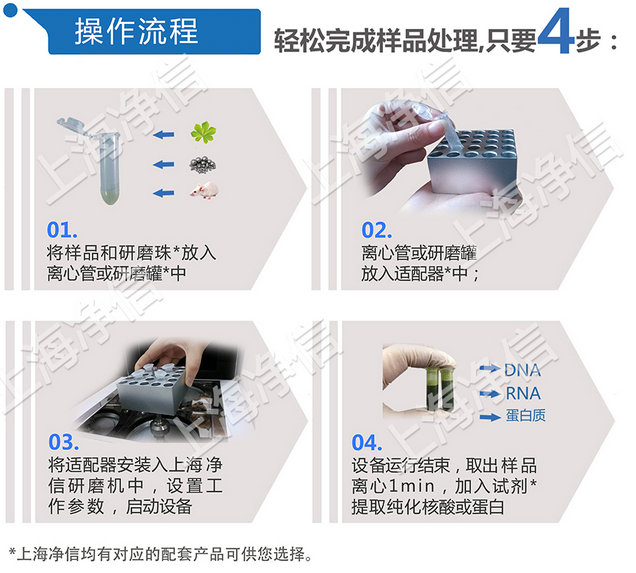 上海凈信®的Tissuelyser®組織研磨儀是一種特殊的、快速的、高效率的、多試管的一致系統(tǒng)。它能將任何來源(包括土壤、植物和動(dòng)物的組織/器官、細(xì)菌、酵母、真菌、孢子、古生物標(biāo)本等)的原始DNA、RNA和蛋白質(zhì)進(jìn)行提取和純化。